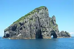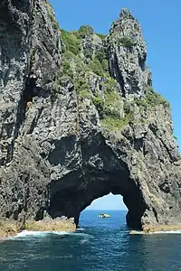 Piercy Island, also known as "The Hole In The Rock" (and by its Māori-language name Motu Kōkako), is located off the north coast of the North Island of New Zealand. It is at the very northern tip of Cape Brett in the Bay of Islands. It is Māori freehold land, which is administered by the Motu Kōkako Ahu Whenua Trust for the benefit of the descendants of the traditional owners.[1]