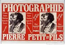 Petit learned photography in Paris in the workshop of André-Adolphe-Eugène Disdéri (1819–1889) (together with 76 other employees). In 1858, he opened his own workshop in Paris with Antoine René Trinquart, later to be called La Photographie des Deux Mondes. This proved to be very successful and workshops were opened in Baden-Baden and Marseille (in partnership with Emile Cazalis).