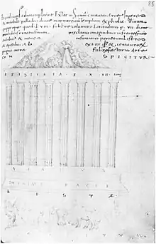 As an epigraphist, Pietro compiled ancient inscriptions and collected many ancient artefacts.[10] The Codex Hamilton, MS 254 in the Staatsbibliothek zu Berlin, was such an epigraphic collectanea. It was compiled, at least in part (folios 81–90), by Ciriaco d'Ancona, and based on one of his three visits to Athens (1436, 1437–8, and 1444). With the aid of a scribe and a draughtsman, Ciriaco created a portfolio of sketches of several ancient Greek ruins, most notably the Parthenon, for Pietro.[11]