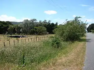 ![]() Southern end of the former Pigeon Bush station yard, looking north-east in the direction of Featherston | |
