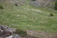 Pilane in Klövdal, Tjörn, Bohuslän, Sweden, is an Iron Age settlement site and grave field, dated to 1-600 AD. The grave field consists of approximately 90 ancient monuments, including stone circles, burial mounds, circular stone grave markers and standing stones. The site is under the care of the Swedish National Heritage Board and the land is leased as sheep pasture.