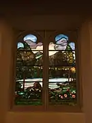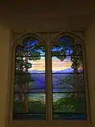 There are two additional paired memorial windows that imitate the style of Tiffany glass.[7]