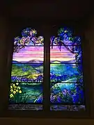 The church has five paired memorial Tiffany glass windows created by Louis Comfort Tiffany from around 1918 to 1923.[6][7] Three of these bear his signature, but the other two are believed to be authentic as well.[7]