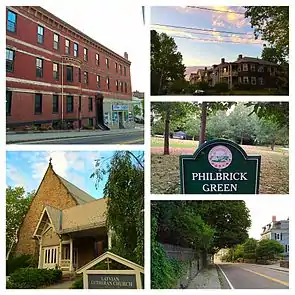 Like other Pill Hills in the United States, Pill Hill in Brookline was nicknamed for the large numbers of doctors in the neighborhood.[1] That was likely due to its proximity to hospitals in the Longwood Medical and Academic Area of Boston.[4] "High Street Hill" is the older and more formal name for the neighborhood.[1] The neighborhood has been listed on the National Register of Historic Places as the Pill Hill Historic District. Pill Hill is one of seven Local Historic Districts in Brookline.[5]