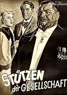 [1]Pillars of Society (German: Stützen der Gesellschaft) is a 1935 German drama film directed by Detlef Sierck (later known as Douglas Sirk) and starring Heinrich George, Maria Krahn and Albrecht Schoenhals.[2][1] It is based on the eponymous play by Henrik Ibsen.[3]