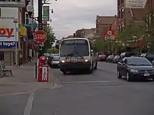 Public transit on the Lower West Side is provided by the Chicago Transit Authority and Metra. The Pink Line, part of the CTA's Chicago "L" train system, has three stops on the Lower West Side; the Western station, the Damen station, and the 18th Street station. The Orange Line has a single station, Ashland station, on the Lower West Side, but its ridership is primarily from neighboring Bridgeport and McKinley Park. The BNSF Railway has two stations on the Lower West Side; Halsted Street/U.I.C. station and Western Avenue station. The CTA also operates 8 bus routes that go through the neighborhood; 9 Ashland, X9 Ashland express, 18 16th/18th, 21 Cermak, 50 Damen, 49 Western, X49 Western Express, and 60 Blue Island/26th. Routes 8 Halsted and 12 Roosevelt skirt the neighborhood too.