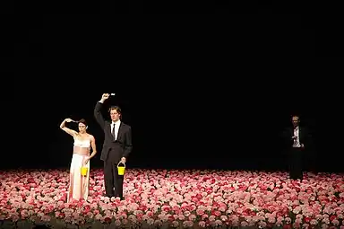 Philippine "Pina" Bausch[1][2][3][4][lower-alpha 1] (27 July 1940 – 30 June 2009) was a German dancer and choreographer who was a significant contributor to a neo-expressionist dance tradition now known as Tanztheater. Bausch's approach was noted for a stylized blend of dance movement, prominent sound design, and involved stage sets, as well as for engaging the dancers under her to help in the development of a piece, and her work had an influence on modern dance from the 1970s forward.[5] Her work, regarded as a continuation of the European and American expressionist movements, incorporated many expressly dramatic elements and often explored themes connected to trauma, particularly trauma arising out of relationships.[6] She created the company Tanztheater Wuppertal Pina Bausch, which performs internationally.