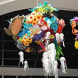 The piñata is most strongly identified with Mexico.[11] The art of making modern piñatas falls under the Mexican craft heading of "cartonería", which refers to the making of items from paper and cardboard. This puts piñatas in the same category as amate paper craft, Judas figures and Mexico City style alebrijes.[14] The Museo de Arte Popular held the first "Concurso de Piñatas Mexicanas" (Mexican Piñata Contest) in 2007 with prizes of 15,000, 10,000 and 5,000 pesos. The purpose of the contest is to help retain this tradition and help it to be continued to be valued.[5] The Museo del Caracol in Mexico City held a workshop on how to make traditional piñatas, as part of its outreach program to the public.[6]