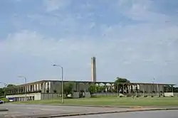 The Pine Bluff Civic Center is the center of municipal government for the city of Pine Bluff, Arkansas. It is located at 200 East 8th Avenue in downtown Pine Bluff. The building is a colonnaded complex of three structures, designed by Arkansas architects Edward Durell Stone and his son Edward Jr., and built from 1963 to 1968. It was the only such civic commission of the elder Stone in his native state, and followed his 1959 groundbreaking work on the United States Embassy in New Delhi.[2]