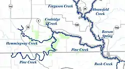 Note: There are two Pine Creeks in Winona County. This Pine Creek is west of State Highway 43. It is sometimes called Fillmore County Pine Creek.The other Pine Creek (Mississippi River tributary) is in the east end of Winona County and Houston County.[7]