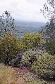 Beginning in 1977, the California Native Plant Society became aware of CDF's intention to dispose of the 300-acre (1.2 km2) property surrounding the fire lookout station. Correspondence from CDF to the state's Department of General Services listed properties, including Pine Hill, as surplus. The surplus parcels list then went through the legislative process where it was determined that the properties were indeed surplus to the state's needs.[25] The Society united with other environmental groups to encourage the state government to begin a coordinated effort to preserve significant natural areas. From 1978 to 1979, a multi-constituent committee, including the California Native Plant Society, Audubon Society, and California Resources Agency, met to set up a significant natural area for Pine Hill.