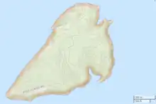 The island is 0.21 square miles in area. It has 10- to 30-ft-high sand bluffs on all sides, though access to the island can be obtained from a sandy beach at the southwestern tip. One named road on the island, Pine Island Road, leads from the access point to the center of the island. The maximum elevation of the island is 165 feet(50.3 metres) above mean sea level.[1]