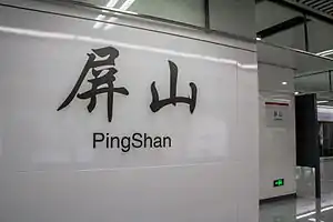 Pingshan Station (Chinese: 屏山站; pinyin: Píngshān zhàn; Fuzhounese: [piŋ˥˥ laŋ˥˥]) is a metro station of Line 1 of the Fuzhou Metro. It is located on the intersection of Guping Road, Qiantang Lane and Yeshan Road in Gulou District, Fuzhou, Fujian, China. It started operation on Jan 6, 2017.[1][2]
