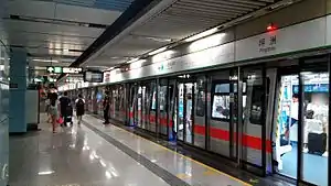 Pingzhou station (Chinese: 坪洲站; pinyin: Píngzhōu Zhàn; Jyutping: Ping4 Zau1 Zaam6) is a station on Line 1 of the Shenzhen Metro in Shenzhen, Guangdong Province, China. The station opened on 15 June 2011.