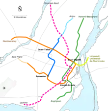 The Pink Line (French: Ligne rose) is a new subway line proposal for the Montreal Metro in Quebec. First proposed by municipal councillor Sylvain Ouellet in September 2011,[1] the Pink Line in its current form was a "central campaign promise" of the mayoral campaign of Valérie Plante, leader of the political party Projet Montréal and now mayor of Montreal. The project was proposed to be finished by 2025, at a cost of an estimated C$5.9 billion.[2]