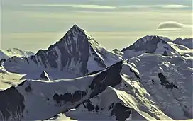 Pinnacle Peak is a remote 3,714-meter-elevation (12,184-foot) mountain summit of the Saint Elias Mountains, in Kluane National Park of Yukon, Canada. It ranks as the 37th-highest officially named mountain in Canada.[5] It is situated at the head of the South Arm of the Kaskawulsh Glacier. Topographic relief is significant as the summit rises 1,500 meters (4,920 feet) above the Dusty Glacier in 3.5 kilometers (2.2 miles). Neighbors include Mount Kennedy, 14 km to the south, and Mount Alverstone, 14 km to the south-southwest.