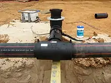 A HDPE ring main that has been joined with an Electrofusion Tee.