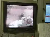 Sometimes referred to as a PIG (pipeline inspection gauge), the camera and lights are mounted in a swiveling head attached to a cylindrical body. The camera head can pan and tilt remotely. Integrated into the camera head are lighting devices, typically LEDs, for illuminating the pipeline. The camera is connected to display equipment via a long cable wound upon a winch. Some companies, such as Rausch Electronics USA, incorporate a series of lasers in the camera to accurately measure the pipe diameter and other data.
