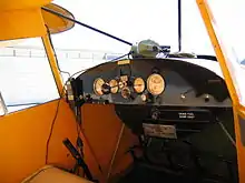 The PA-17 Vagabond version features dual controls, enabling it to be used for pilot training. It has a bungee cord shock-absorbed landing gear (solid gear on the PA-15), and a 65 hp (48 kW) Continental A-65 engine.[1]