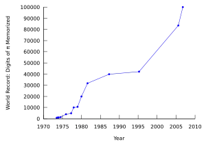 Recent decades have seen a surge in the record number of digits memorized.[4]