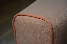 In sewing, piping is a type of trim or embellishment consisting of a strip of folded fabric so as to form a "pipe" inserted into a seam to define the edges or style lines of a garment or other textile object. Usually the fabric strip is cut on the bias. It may be made from either self-fabric (the same fabric as the object to be ornamented) or contrasting fabric, or of leather.[1]