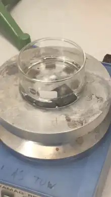 Once the mixture has stabilized, it can be further heated to sustain its reactivity.[6] The hot (often bubbling) solution cleans organic compounds off substrates and oxidizes or hydroxylates most metal surfaces. Cleaning usually requires about 10 to 40 minutes, after which the substrates can be removed from the solution and rinsed with deionized water.