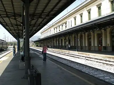 Pistoia railway station is the station of Pistoia in Piazza Dante. It is on the Viareggio–Florence railway, which connects Florence and Viareggio and it is at the beginning of the Porrettana railway to Bologna.