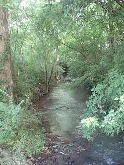 Pistol Creek arises from several springs in the Carpenter's Campground section of Blount County, flowing first northeast, then northwest to Pearson Springs within the city of Maryville. At Pearson Springs, the Maryville Alcoa Greenway begins to parallel Pistol Creek, which then flows east through Pearson Springs Park and Sandy Springs Park. On the south side of Maryville, the creek passes the ruins of an early 20th-century dam and mill race that are listed on the National Register of Historic Places. Further downstream it passes Fort Craig spring, site of Maryville's founding settlement. It then hooks around the downtown area and contributes, along with Brown Creek, to the impounded Greenbelt lake on the north side of town. From the Greenbelt it flows north into Alcoa and joins the Little River a mile south of Rockford.