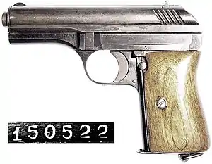 The pistole vz. 24 (Pistol Model 24) was the standard Czech Army pistol of the inter-war period. It was an improved version of the pistole vz. 22, which had been licensed from Mauser. Slovakia seized over ten thousand vz. 24s when it declared its independence from Czechoslovakia in March 1939.[2] The vz. 24 was succeeded in production by a simplified version chambered in .32 ACP, the vz. 27.