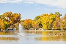 - Lakeside Park - lake, accessible fishing dock and parking area, playground, two pavilions, tennis courts
