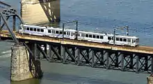 The Pittsburgh Light Rail (commonly known as The T) is a 26.2-mile (42.2 km) light rail system in Pittsburgh, Pennsylvania, and surrounding suburbs. It operates as a deep-level subway in Downtown Pittsburgh, but runs mostly at-grade in the suburbs south of the city. The system is largely linear in a north-south direction, with one terminus near Pittsburgh's central business district and two termini in the South Hills. The system is owned and operated by Pittsburgh Regional Transit. The T is one of the surviving first-generation streetcar systems in North America, with the oldest portions of the network dating back to 1903 and the Pittsburgh Railways.[5] It is also one of only three light rail systems in the United States that continues to use the broad 5 ft 2+1⁄2 in (1,588 mm) Pennsylvania Trolley Gauge on its lines instead of the 4 ft 8+1⁄2 in (1,435 mm) standard gauge. In 2022, the system had a ridership of 2,429,500.