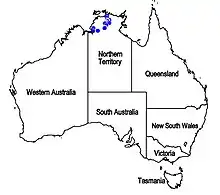 This pityrodia occurs in Arnhem Land including in the Kakadu National Park and Nitmiluk National Park.[2][3]
