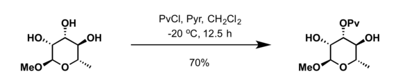The pivaloyl group is used as a protecting group in organic synthesis. Common protection methods include treatment of alcohol with pivaloyl chloride (PvCl) in presence of pyridine.[8]