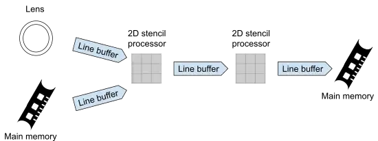 A typical image-processing program of the PVC is written in Halide. Currently, it supports just a subset of Halide programming language without floating point operations and with limited memory access patterns.[8] Halide is a domain-specific language that lets the user decouple the algorithm and the scheduling of its execution. In this way, the developer can write a program that is optimized for the target hardware architecture.[2]