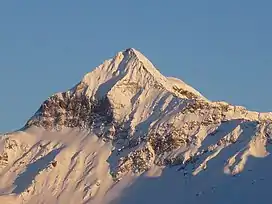 Pizzo Scalino is a mountain of the Bernina Range in Lombardy, Italy. It is known as the Valemalenco Matterhorn due to its pyramidal shape when viewed from the valley below. It lies close to Piz Cancian, where the border with Switzerland runs. The mountain is usually climbed from the Campo Moro Dam. From the summit, the whole of the Bernina Range is visible. It was first climbed in 1830.[2]