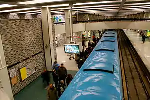 Place-des-Arts station is a Montreal Metro station in the borough of Ville-Marie, Montreal, Quebec, Canada.[4] It is operated by the Société de transport de Montréal (STM) and serves the Green Line. The station opened on October 14, 1966, as part of the original network of the Metro. It is located in the Quartier des spectacles district, in east-central downtown.