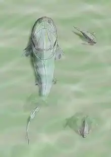 Phyllolepida ("leaf scales") were flattened placoderms found throughout the world. Like other flattened placoderms they were bottom-dwelling predators that ambushed prey. Unlike other flattened placoderms, they were freshwater fish. Their armour was made of whole plates, rather than the numerous tubercles and scales of Petalichthyida. The eyes were on the sides of the head, unlike visual bottom-dwelling predators, such as stargazers or flatfish, which have eyes on the top of their head. The orbits for the eyes were extremely small, suggesting the eyes were vestigial and that the phyllolepids may have been blind.