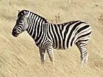 ![]() | Grant's zebra, Equus quagga boehmi – Matschie, 1892 | Zambia west of the Luangwa River and west to Kariba, Katanga Province of the Democratic Republic of the Congo, north to the Kibanzao Plateau, and in Tanzania north from Nyangaui and Kibwezi into southwestern Kenya as far as Sotik and southwestern Ethiopia from Omo Valley to Nechisar plains in the north and Yabello and Borena Zone to the east. |