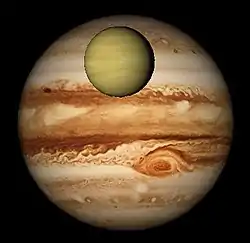 Twice during the orbital cycles of Jupiter and Saturn, the equatorial (and satellite) planes of those planets are aligned with Earth's orbital plane, resulting in a series of mutual occultations and eclipses between the moons of these giant planets. The terms eclipse, occultation, and transit are also used to describe these events.[1] A satellite of Jupiter (for example) may be eclipsed (i.e. made dimmer because it moves into Jupiter's shadow), occulted (i.e. hidden from view because Jupiter lies on our line of sight), or may transit (i.e. pass in front of) Jupiter's disk (see also Solar eclipses on Jupiter).