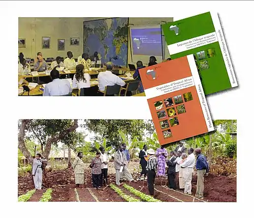 The PROTA Handbook Series is a large illustrated encyclopedia series of utility plant species found in Tropical Africa. PROTA's retirement in 2013 made it unfeasible to complete the encyclopedia series, therefore only 9 volumes were ever published. In 2002, the series was projected to contain 16 volumes with entires for 7,000-8000 species. It was estimated that the series would include 2,500 botanical line drawings, and 2,500 species distribution maps in about 11,000 pages.[2] The existing PROTA encyclopedia volumes been described metaphorically in the Kew Bulletin as a treasure trove of information.[15] The Food and Agriculture Organization and Biodiversity International described PROTA 2: Vegetables as a detailed collection of ethnobotanical knowledge.[16] Some PROTA encyclopedias have received more than 376 citations.[17] PROTA Encyclopedia editors included individuals such as G.J. Grubben, who had led projects commissioned by the United Nations International Board for Plant Genetic Resources; and Ameenah Gurib-Fakim, a biodiversity scientist who later became the President of Mauritius.[18] Though organized by species according to conventional botanical nomenclature, PROTA encyclopedias also include vernacular names in major African languages such as Swahili where information was available.[13] PROTA continued to distribute its encyclopeidas after the organization's retirement. As of 2019, than 30,000 PROTA encyclopedias had been printed in English and French and were distributed widely with the help of the Technical Centre for Agricultural and Rural Cooperation (CTA) and the now-retired Agromisa Foundation. Several PROTA encyclopedias are also available at the International Union for Conservation of Nature (IUCN) Headquarters' Library in Switzerland.[19]