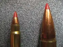 "Ballistic Tip" is a registered trademark of Nosler, but numerous other companies produce similar projectiles, including Hornady[2] and Sierra. Nosler uses a color code to indicate caliber on the polymer bullet tips, to make them easily distinguishable from each other: .224 orange,.257-blue, 6mm-purple, 6.5mm-tan, .270-yellow, 7mm-red, .30-green, .338-maroon and 8mm-dark blue.[3]