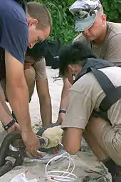 Disposal of munitions with plastic explosives; note the malleability of the white plastic explosive charges