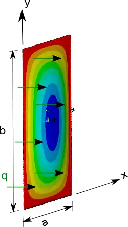 where is an applied transverse load per unit area, the thickness of the plate is , the stresses are , and