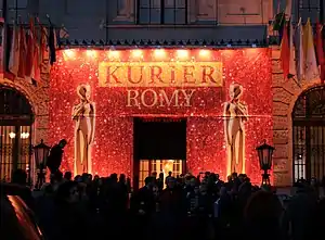 The Romy television award in honor of the German-born and naturalized French actress Romy Schneider, born in Vienna, was created in 1990 by the Austrian newspaper Kurier – or rather their movie reviewer Rudolf John, who also designed the 30.5 cm gilded trophy. It recalls a scene from the movie The Swimming Pool with Alain Delon, when Romy Schneider arranges her dress. (See Senta Berger getting the Platinum award in 2007). The award ceremony is conducted at the Hofburg in Vienna.