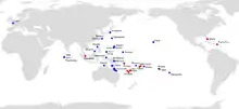 Platydemus manokwari has been introduced to several tropical and subtropical islands such as Micronesia, the Marquesas, the Society Islands, Samoa, Melanesia, and the Hawaiian Islands. These islands often harbor endemic radiations of rare and endangered snail species, which are a primary source of nutrition for Platydemus manokwari.[8] Platydemus manokwari has also been introduced to several Japanese Islands. In 2015, P. manokwari was found in Puerto Rico and in Florida, from which it could further invade the mainland southern US.[3][12] In 2021, it was reported from the French islands of Guadeloupe, Martinique and Saint Martin in the Antilles.[13]