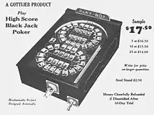 Play-Boy is a pinball machine released by Gottlieb in 1932. The game features a card gambling theme.[1] It should not be confused with several other pinball machines with the name Playboy as from Rally Play Company,[2] Bally,[3] Data East[4] and Stern.[5]