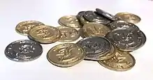 Play money is noticeably fake bills or coins intended to be used as toy currency, especially for classroom instruction or as an in-game currency in board games such as Monopoly, rather than currency in a legitimate exchange market. Play money coins and bills are collected widely. They can be found made from metals, cardboard or, more frequently today, plastic. For card games such as poker, casino tokens are commonly used instead.