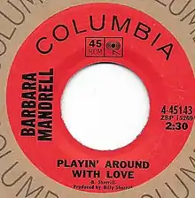 "Playin' Around with Love" was released as a single on Columbia Records on April 20, 1970. It was backed on the B-side by the song "I Almost Lost My Mind". The track was issued by the label as a seven inch vinyl single.[4] The single spent 12 weeks on America's Billboard country songs chart, peaking at the number 18 spot. It became Mandrell's first top 40 charting single and first to reach the top 20 in her career. It was also her second single release for the Columbia label.[5] In Canada, "Playin' Around with Love" was her first single to enter the RPM Country Singles chart, climbing to number 48 in 1970.[6] The song was released on Mandrell's debut studio LP titled Treat Him Right. The album was released in 1971.[7]