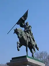 Plaza San Martín is located in the downtown area of Rosario, occupying the block defined by Santa Fe St., Dorrego St., Córdoba St. and Moreno St., along the historical segment of Córdoba St. called Paseo del Siglo. In the center of the plaza there is a bronze statue of General José de San Martín, mounted on a horse and carrying a flag. The statue is a copy of a monument erected in the French city of Boulogne-sur-Mer (the place of San Martín's voluntary exile and death), and was inaugurated on 21 May 1913.