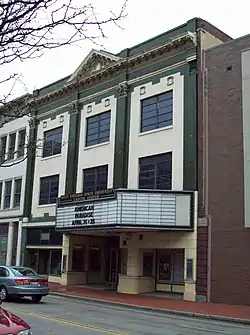 Plaza Theatre, also known as the Capitol Theater or West Virginia State University Capitol Center, is a historic theatre building located at Charleston, West Virginia. It was constructed about 1912 and is a turn-of-the-century theater/commercial/office building located in a transitional business district of downtown Charleston. The three-story brick structure is characterized by eclectic Classical Revival style architecture incorporating a number of elements from classical Greek forms. The theater's streetfront entrance is flanked by two commercial storefronts. The dimensions of the Capitol Theater building are 53 feet wide by 163 feet deep (16 by 50 m).[2]
